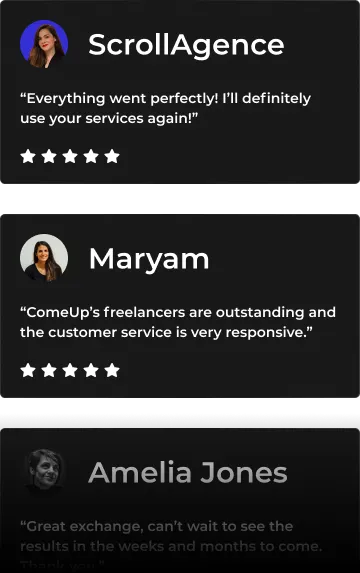 When you place an order, ComeUp keeps your funds safe and only pays the freelancer after you approve their work
